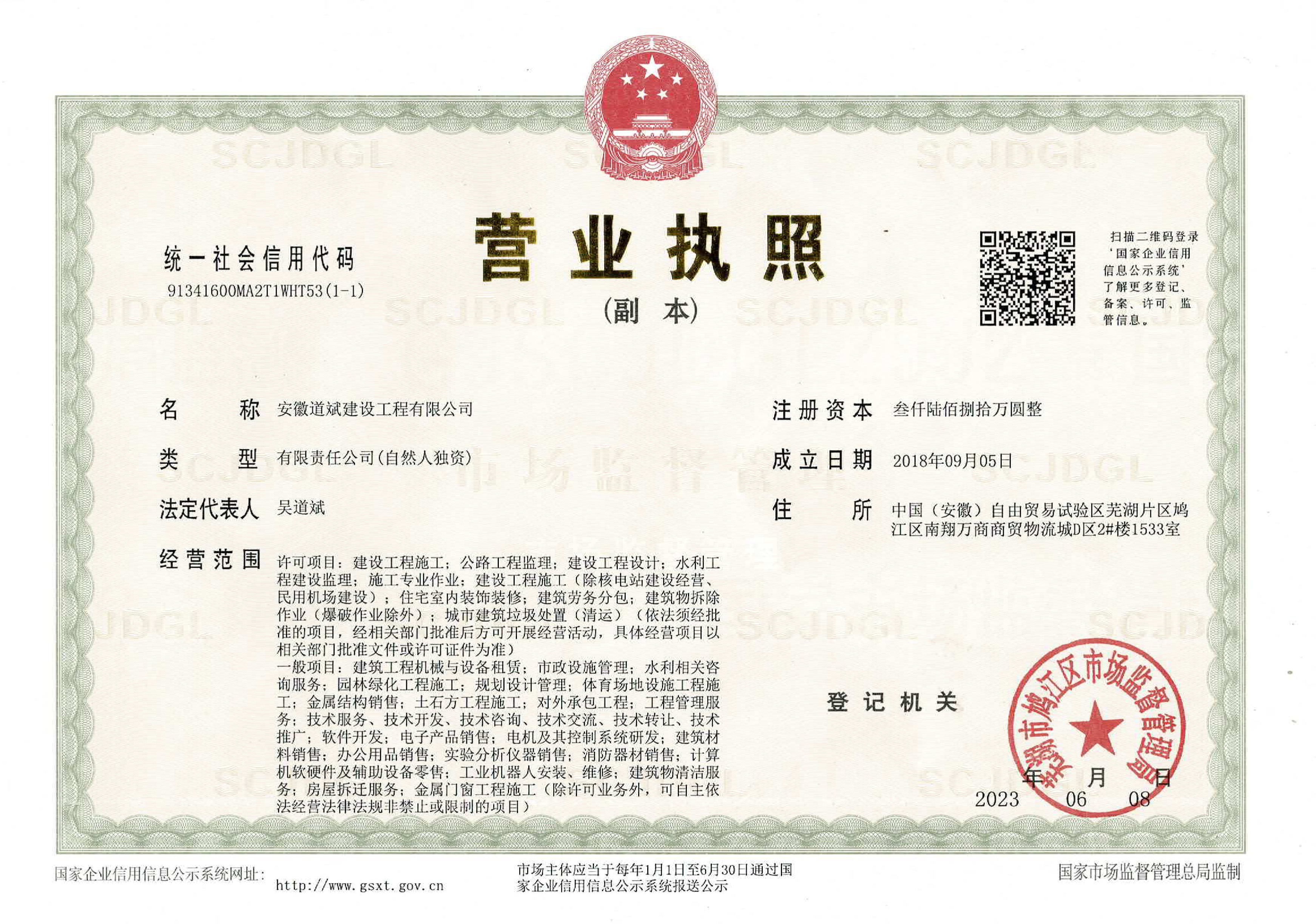 安徽道斌建設工程有限公司 版權所有 免責聲明 皖ICP備2021012659號-1 營業(yè)執(zhí)照